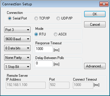 在连接好设备后如出现通讯不上,或者通讯前的验证,可以使用测试软件检验通讯是否正常,程序及参数有无错误。