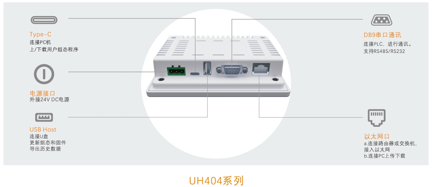 USB Host USB2.0 x 1,支持U盘更新固件、组态和存储数据