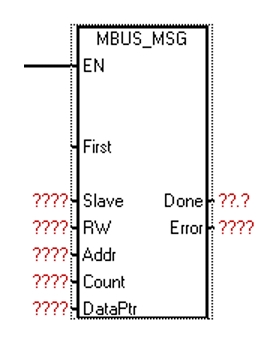 参数“从站”(Slave) 是 Modbus 从站设备的地址。地址 0 是广播地址。仅将地址 0 用于写入请求。系统不会响应对地址 0 的广播请求。并非所有从站设备都支持广播地址。S7-200 SMART Modbus 从站库不支持广播地址。