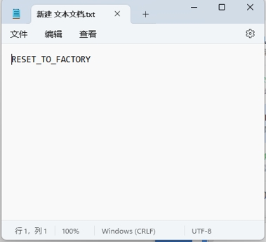 1、打开根目录,新建文本文档,并将  RESET_TO_FACTORY  输入到文档中并保存。