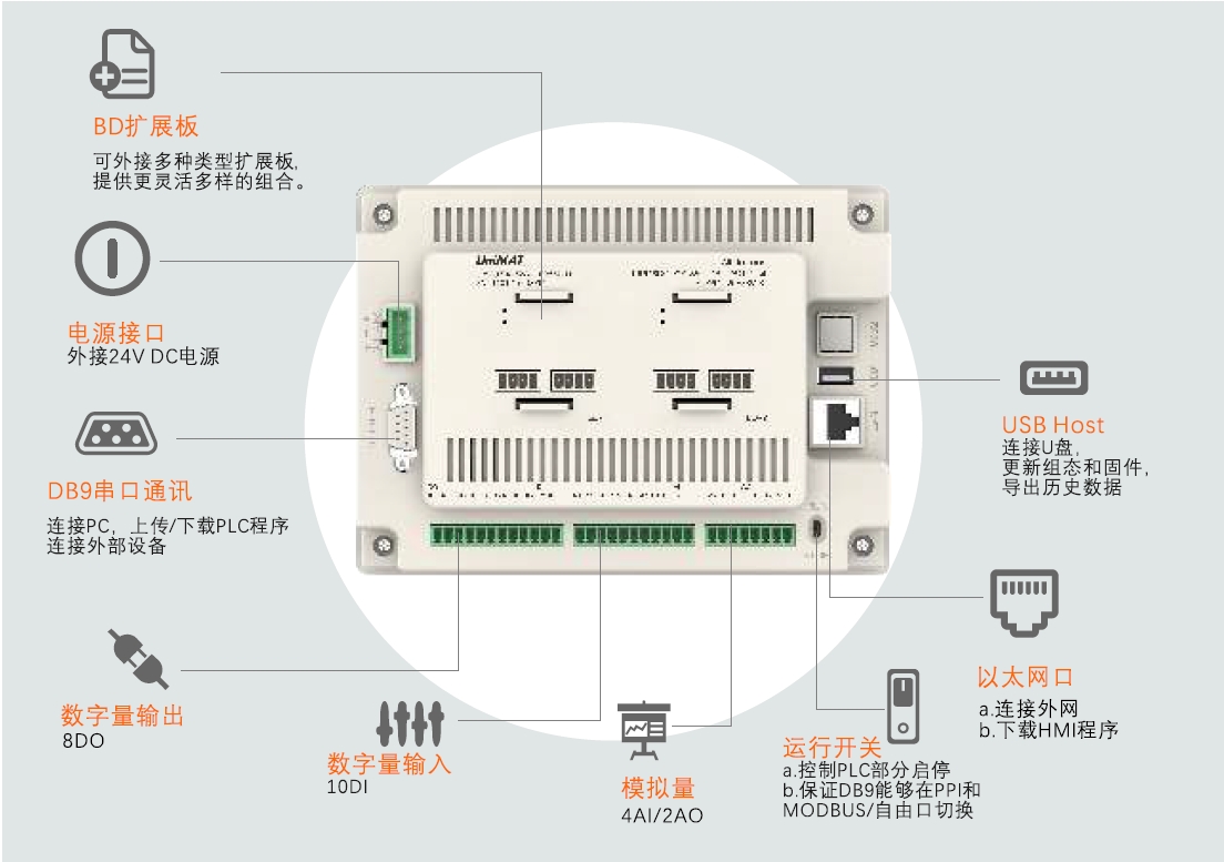 工业物联网PLC触控一体机是九游会j9网站首页最新研发的集PLC、HMI、工业互联网为一体的集大成者。支持工业互联网功能,可进行远程操作;本体支持数字量和模拟量,可对应选择;支持2块BD扩展板,灵活适应不同现场需求;PLC部分可按需求选择欧系、日系风格编程方式。