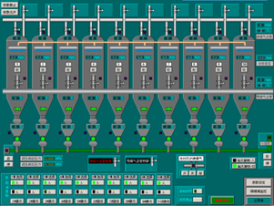 包括整个卷杨及炉顶设备,其中主要有上料小车、左右探尺、柱塞阀、上密、下密、旋转布料装置、均压阀、放散阀等。生产中可实现手动、自动随时转换,各种运行、故障有不同的颜色来显示,特点1、小车拐点、卸料位等各减速点停车位可根据生产调节2、旋转布料角度及速度可通过画面直接设定,满足生产工艺中的各种布料方式3、在检修或新员工培训情况下还可以通过画面各种数据的设定来进行模拟生产。